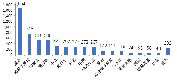 其中浸染性鈾礦主要分布在澳大利亞及非洲,不整合面型鈾礦主要分布在加拿大阿薩巴斯卡盆地,砂巖型鈾礦主要分布在中亞。